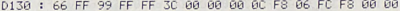 D130 : 66 FF 99 FF FF 3C 00 00 00 0C F8 06 FC F8 00 00