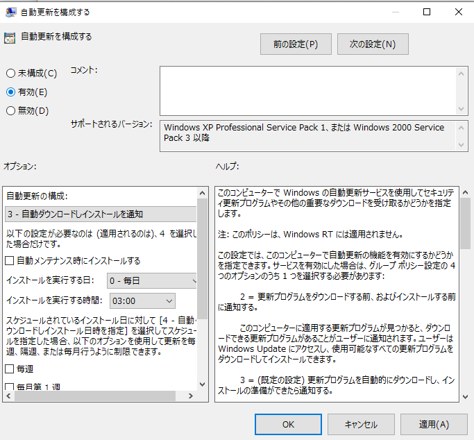 windows_updateの自動更新を構成する
